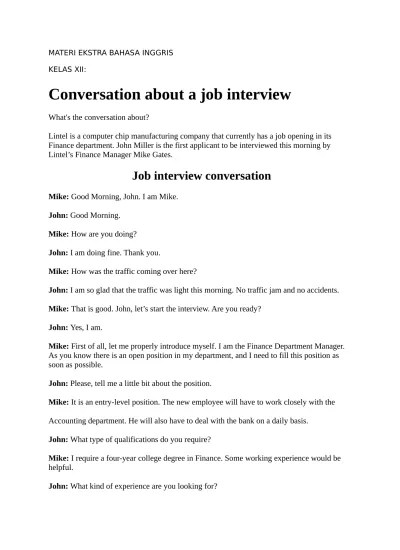 contoh job interview transcript wawancara (interview) adalah percakapan antara kedua pihak atau lebih, satu pihak sebagai pewawancara dan pihak lainnya sebagai yang diwawancara. Here's a list of common job interview questions, with examples of the best answers about you, your work history and experience, the job, your goals, the new job, salary, and what you have to offer the employer. Employers ask many of the same accounting interview questions… whether it's a big four accounting firm… or an accountant job interview at a tech company, healthcare company, etc. Like most industries, the questions you'll be asked when applying for an accounting job will typically depend on the role you're applying for. How to write an accountant job description.